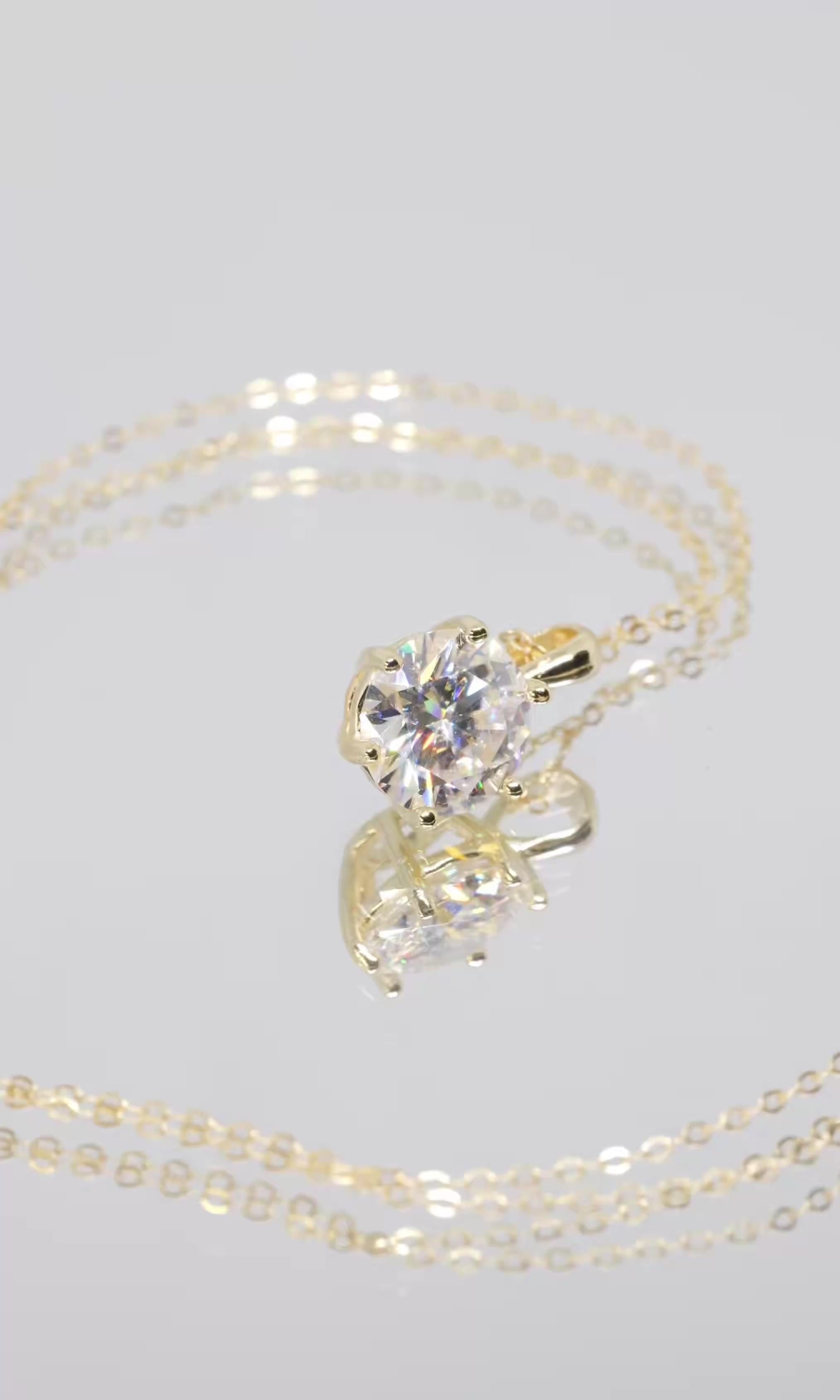 Deze rond geslepen moissaniet hanger heeft de luxueuze uitstraling van diamant, maar met de uitzonderlijke helderheid en schittering van moissaniet. Gemaakt voor een verfijnde dagelijkse look die jarenlang mooi blijft.